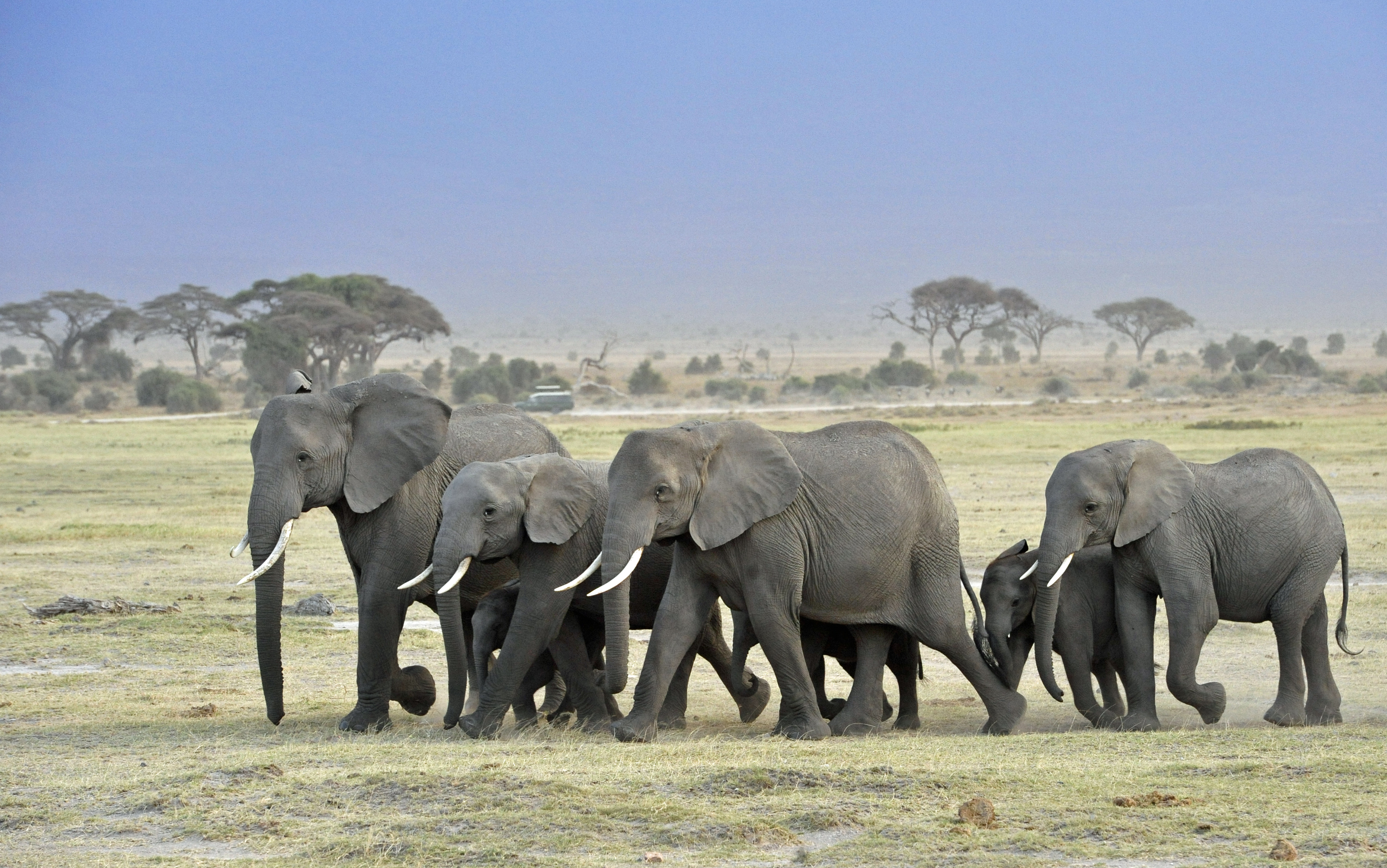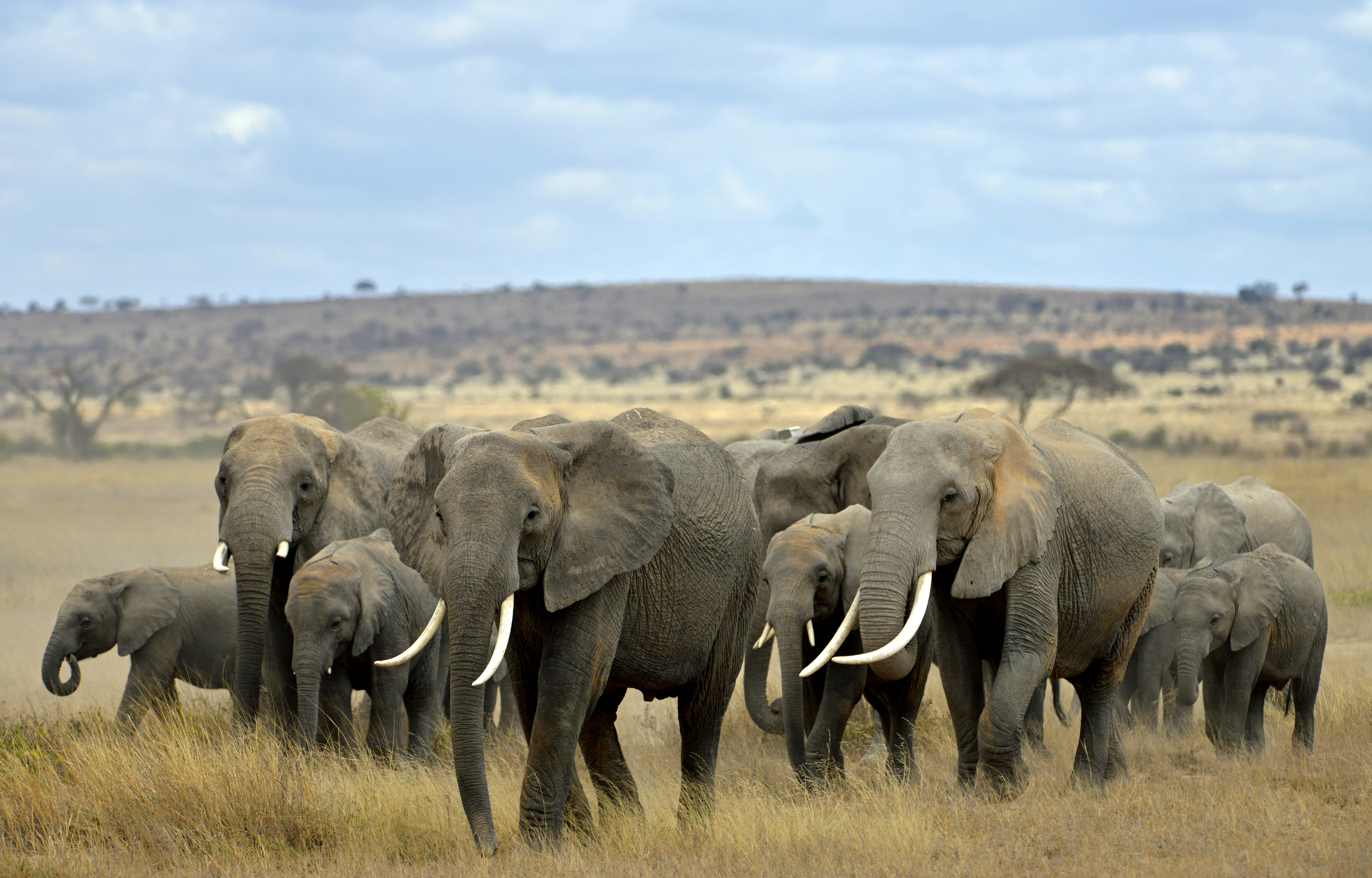 Elephants are social creatures who organize themselves into matriarchal herds usually led by the oldest and largest female. Herds range in size with the largest herds containing up to 50 elephants.