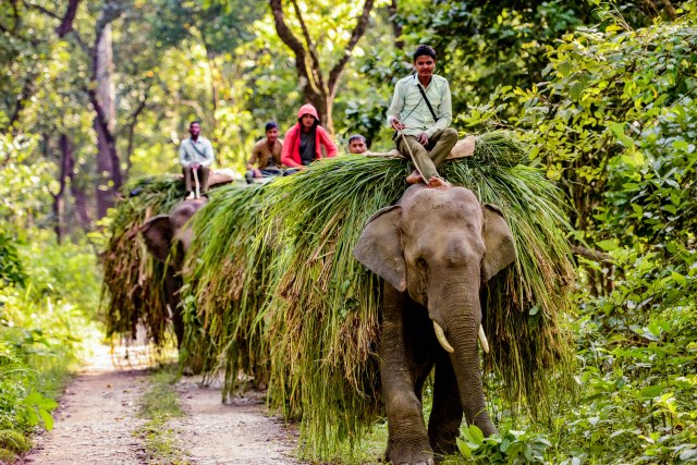 These boys are Mahouts who normally have a single elephant they care for. I took this photograph in Chitwan National Forest and these young men are bringing in a crop of grass they have just cut in the forest. The grass will be used to feed the elephants. You can’t quite see it here but the lead Mahout was reading an iphone as he ambled along.