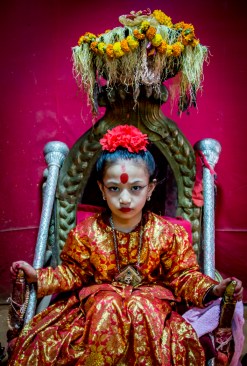 This young girl is 8 years old, lives in a secluded fashion with several adult helpers, and will retain her title and lifestyle until she menstruates. She will then be considered unclean and unworthy of worship and will be returned to her parents. There are obviously lots of questions and commentary that could be (and are being) asked and made regarding this tradition.