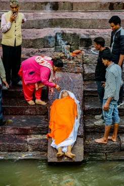 This image of the final rites being given to a dear one is at the Pashupatinath Temple in Kathmandu. Shortly after the body was cremated the ashes were spread onto the river which runs into the Ganges downstream.