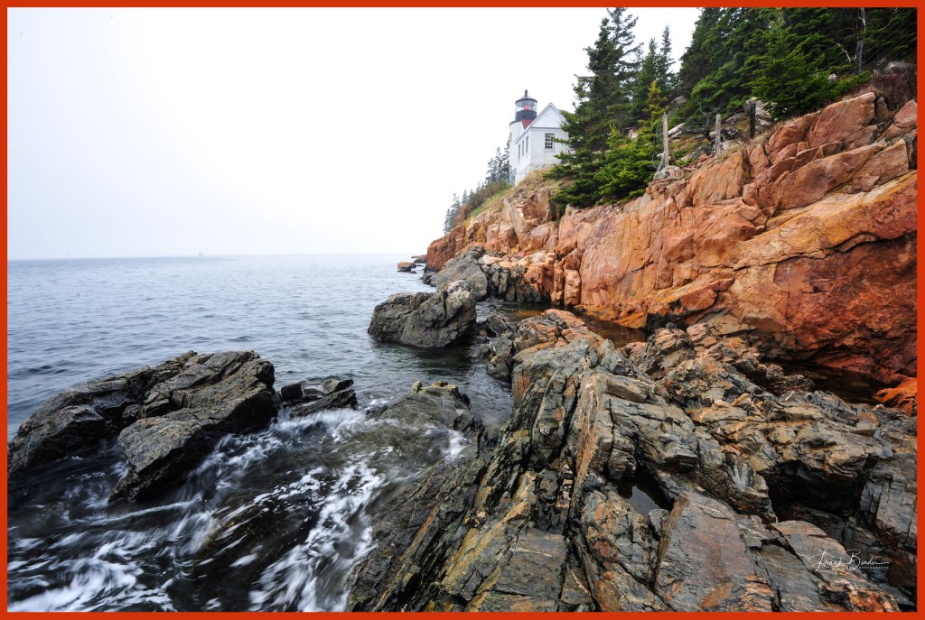 The Bass Harbor Lighthouse is among the most photographed and visited in the U.S. It’s particularly popular at sunset when the sun lights up this section of the park’s coastline. On any given summer or fall day, there will be hundreds of folks climbing all over these rocks as sunset approches. I shot this image on a previous trip to the park. On the day we visited the lighthouse there was a torrential rain and windstorm, but amazingly, there were still many people walking down the short trail to this area.