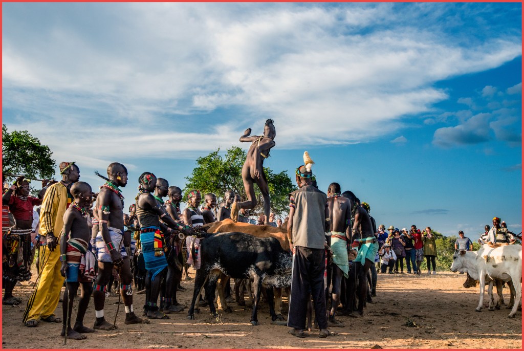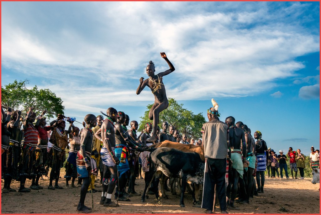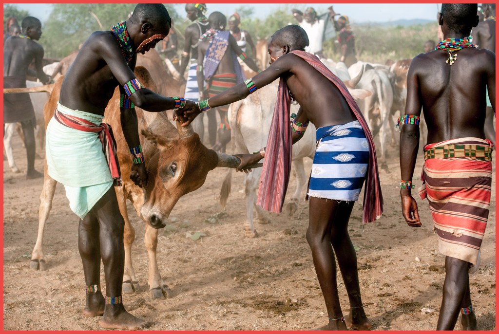 The members of the Hamer tribe in Southern Ethiopia live traditional pastoral lives in the same way as many past generations of their tribe. As pastoralists, cattle play a significant role in the culture and mores of the tribe. Nowhere is this more evident and central to one of the Hamer’s most well known and epic ancient rites of passage; the bull jumping ceremony.