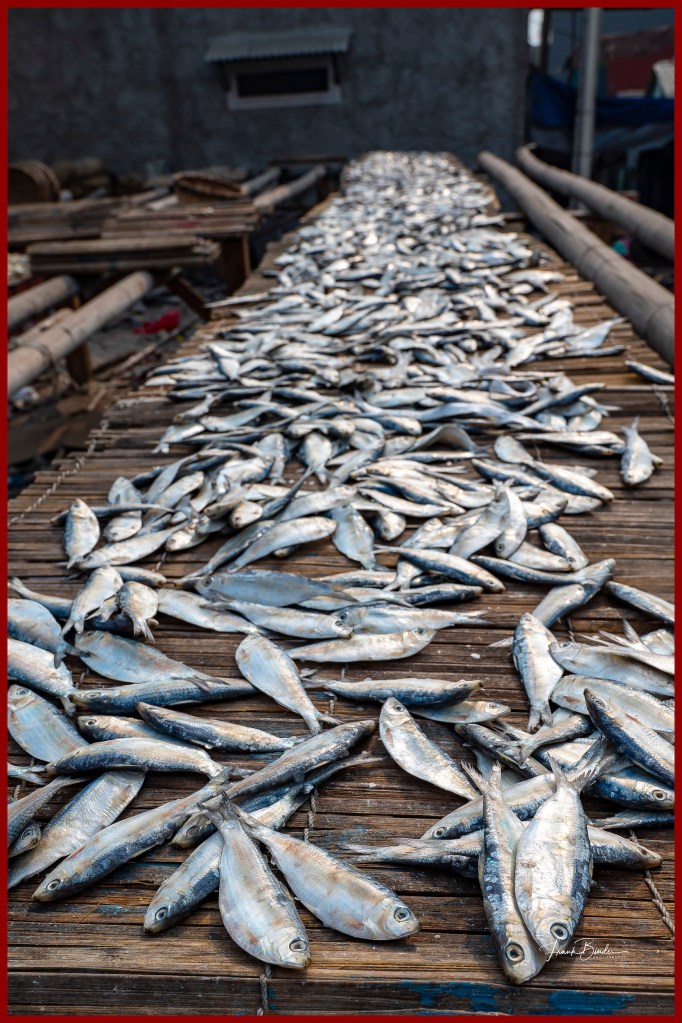 After cooking the fish will be set out on platforms to dry….no mechanized handling of the fish anywhere in the process.
