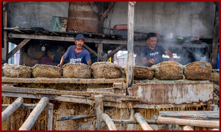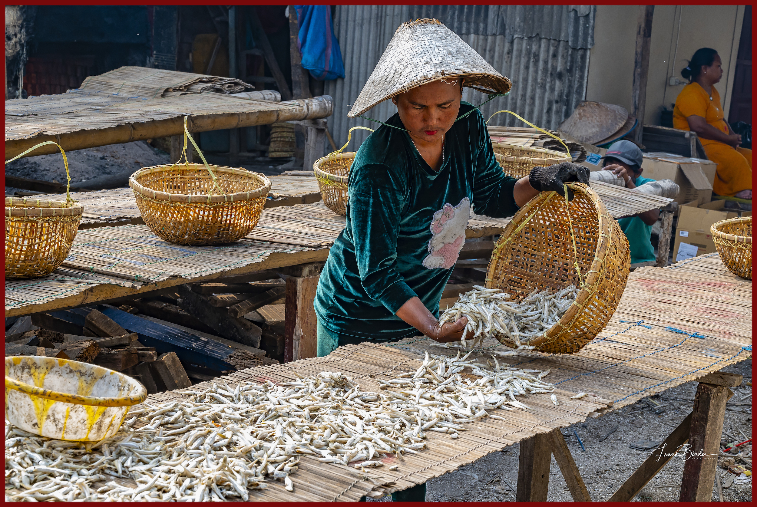 After the fish dry, they will be moved on for further processing or sold as is in local markets. Indonesians eat these anchovies whole.